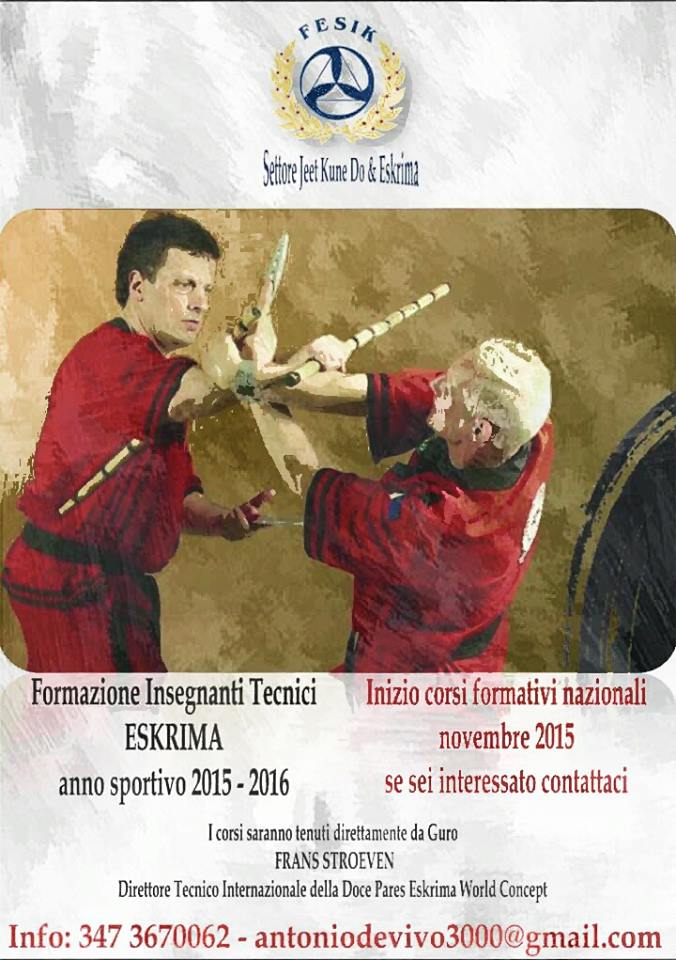 La formazione Insegnanti Tecnici per la Fesik serttore Eskrima sarà condotta direttamente dal Referente Internazionale, Guro Frans Stroeven